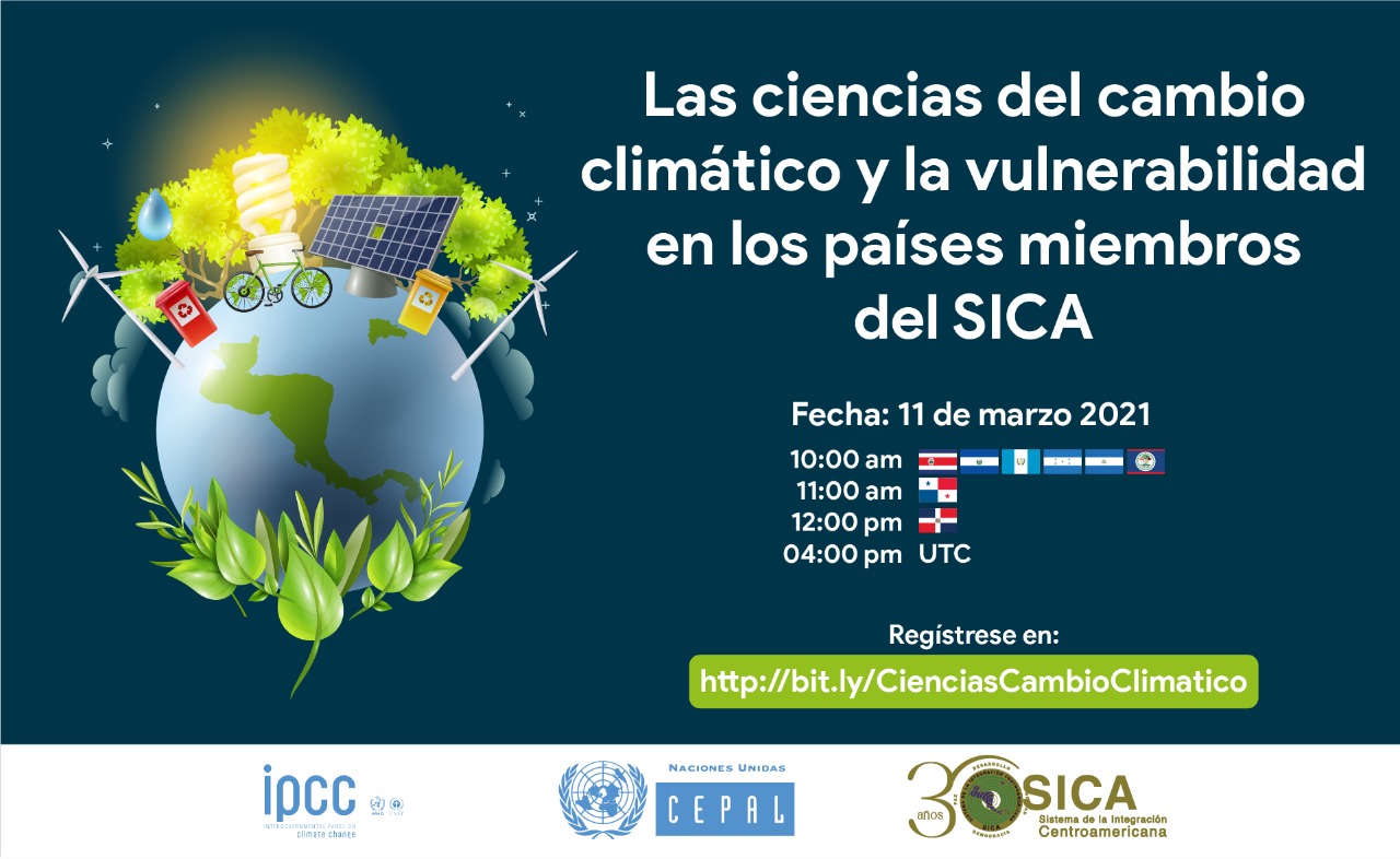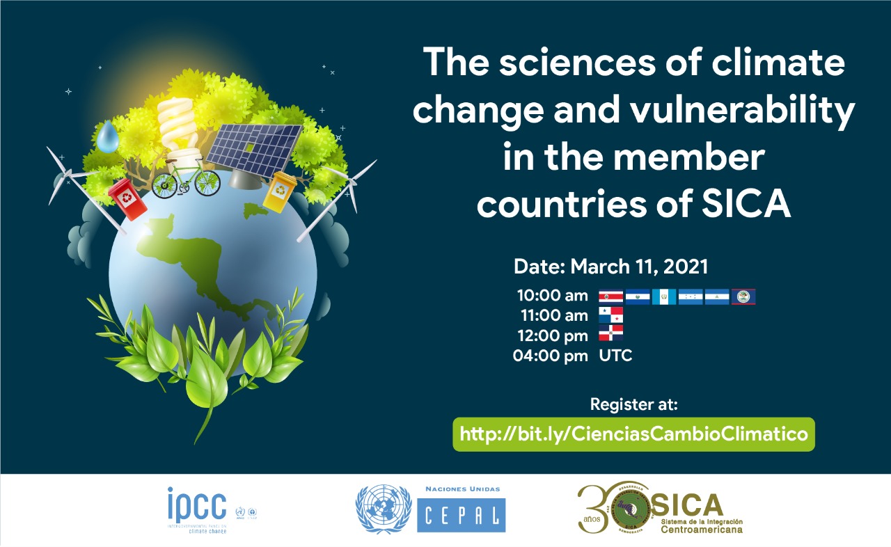 This regional webinar has three objectives. First, is the launching of the Science Panel on Climate Change for Central America, with the participation of scientific, academic, and other institutions working in the region on issues related to climate change. This panel will be modelled for the Central America region following the IPCC model at the global level. The second objective is to highlight the regional integration of the countries of the Central America Integration System SICA in matters of climate change focusing on efforts to prevent disasters, food, water and energy security to reduce the vulnerability of the region to the impacts of climate change. Finally, the webinar will include a presentation by Thelma Krug, IPCC Vice-Chair highlighting the main findings of the latest reports focusing on vulnerability and adaptation. The event will be facilitated by Dr. Edwin Castellanos, Professor at Universidad del Valle de Guatemala and Coordinating Lead Author of the WGII of the IPCC. Simultaneous interpretation in English and Spanish will be kindly provided by the hosts.